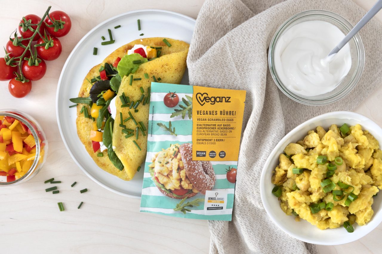Vegan Scrambled Eggs 50 g Ohhhhh, what’s there to see? Veganz Vegan Scrambled ‘Egg’ will make your breakfast truly unique! All you need to do is stir some water into this heartily seasoned alternative to egg made from broad beans, et voilà, you’ve got yourself vegan scrambled ‘egg’ or an omelet to pop on the breakfast table. If scrambled ‘egg’ is something you’ve been missing since you went vegan, you’ll be wanting for nothing now. It only takes a moment to put together the Veganz Vegan Scrambled ‘Egg’ and since it’s already seasoned with kala namak and the like, it doesn’t just taste authentic, it also provides a good helping of protein on top. Nutrition information Nutrition Information per 100 g Energy 338 kJ 81 kcal Fat 1.9 g - of which saturates 0.2 g Carbohydrate 12 g - of which sugars 1.2 g Protein 2.7 g Salt 0.99 g Ingredients Broad bean flour (45 %), corn flour, gelling agents: methyl cellulose, carrageenan; natural flavourings, pea protein, dextrose, salt, stabiliser: calcium carbonate; spices, black salt (crystal salt, salsola stocksii), turmeric. May contain traces of celery, soya, cereals containing gluten, egg, milk and sulfite. 🛈 Available here Globus | DE Spar | SI REWE | DE Amazon Fresh Vekoop | DE EDEKA | DE MPREIS | IT Show more
