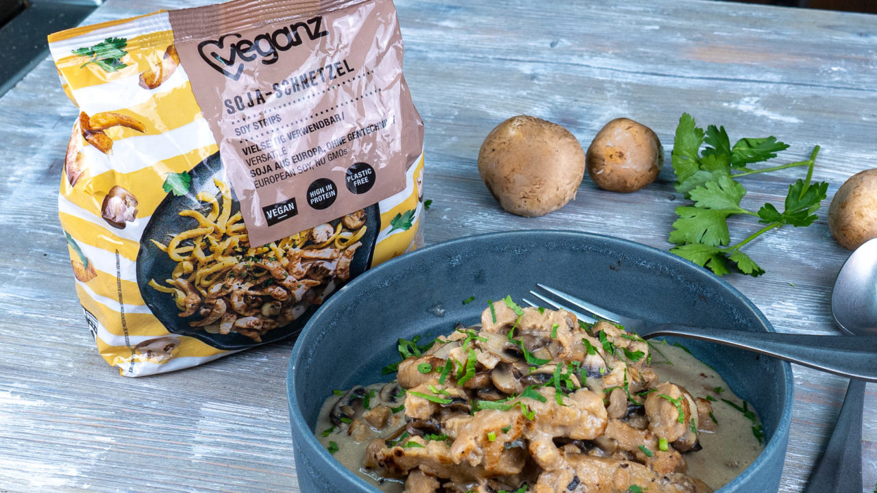 Vegan No-Moo and Mushroom StewWith the Veganz Shredded Soy Are you looking for a really quick recipe for a No-Moo Stew made with Shredded Soy? Well, you’ve come to the right place. Et voilà, here’s the vegan recipe. The main ingredient is our delicate vegan Shredded Soy. Serve with Spätzle, noodles, potatoes, or rice – a true German meaty classic with fresh mushrooms and herbs. A really ‘meaty’ vegan treat What used to be your favourite meat dish? No matter what meal made with animal ingredients it was: there’s no need to pine after it any longer! After all, you can veganise any recipe – and it’s usually really easy. All you need is the right base ingredient and seasoning. In this case, you’ve got our Shredded Soy that provides the perfect stringy consistency of meat. Simply fry the Shredded Soy in the pan for a moment and then it’s the seasoning that gives it the flavour we so associate with the traditional recipe. So, if you learn to prepare soya and similar products properly, you’ll be able to create that hearty kind of meal whenever you like. And the best thing: You won’t be harming any animals to make this meal and you’ll even be helping protect the climate! It’s all about the soya bean Soya beans must be one of the legumes that attract the most controversy in the (vegan) diet. That’s despite the fact that the little bean that originated in Asia doesn’t just benefit our health, it also has the potential to enrich plant-based cuisine in many ways. Soya contains potassium, selenium, iron, vitamins B 1&2 and vitamin E, among others. You’ve probably already heard the prejudice that ‘Soya is genetically modified’, but there’s actually no need to worry: the soya that we grow in the EU isn’t genetically modified – the rules are very strict in that respect. So, you can simply enjoy the fact that soya serves as a perfect and sustainable base ingredient in all sorts of products – from alternatives to milk to a hearty piece of cruelty-free ‘meat’. Here’s how to prepare the vegan No-Moo Stew with Shredded Soy: Simply pour boiling hot liquid (water, broth, etc.) onto Veganz Shredded Soy and leave to marinate for 5-10 minutes so that it becomes lovely and soft. Important: Drain and squeeze it well. It will allow the handy alternative to meat to absorb the seasoning and marinate even better. All you need to do now is place it in the pan and prepare it the way you like best. By loading the video you accept the privacy statement of YouTube.More ... Load video Always unlock YouTube Ingredients 150 g Veganz Shredded Soy 300 g brown mushrooms 2 spring onions 1 garlic clove Rapeseed oil for frying 250 ml vegan alternative to cream 100 ml white wine 100 ml vegetable broth 2 bay leaves 1 pinch nutmeg 1 tbsp flour Fresh parsley Slice the mushrooms. Finely chop the spring onions, garlic, and parsley Heat the rapeseed oil in a pan and briefly fry the Veganz Shredded Soy. Add the spring onions and garlic and sauté them for a while until the onions become translucent. Next, add the mushrooms and fry until they begin to turn brown. Add the flour, stir, and continue to sauté while the flour cooks a little. Next, douse the mixture with white wine and leave to simmer for a moment. Prepare the Shredded Soy according to the instructions on the packet. Finally, add the vegan alternative to cream, the broth, and the bay leaves. Season to taste with salt, pepper, and nutmeg and allow to simmer for roughly another 3 minutes so the mixture thickens a little. Serve and garnish with the parsley. Done! Unsere Produkte für deine Rezeptkreation Quelle Recipe from: Hier kocht Alex Alexander Flohr, better known as "Hier kocht Alex" is not exactly the prototype vegan considering he is a master road builder. As a YouTuber, cookbook author, and TV chef, he shows with his recipes that you don’t have to do without as a vegan. From Königsberger meatballs to Soljanka, he brings well-known classics to the table in a purely plant-based version! Copyright: Hier kocht Alex