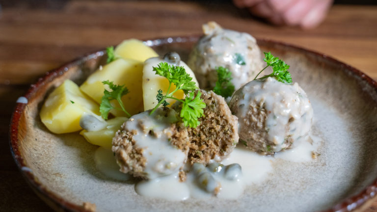 Vegan Königsberger meatballs in caper sauce