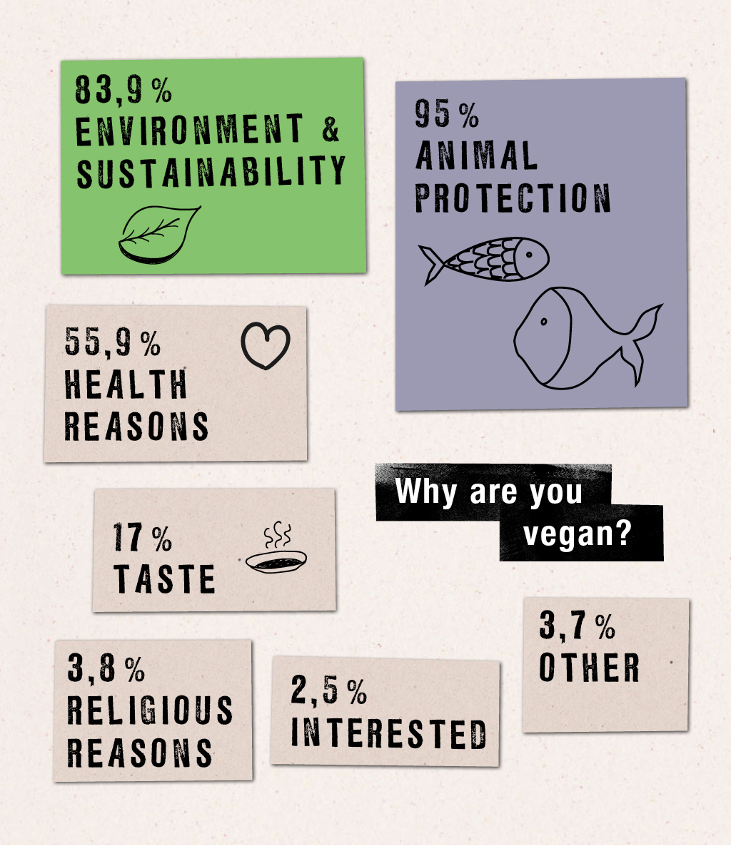 Veganz Nutrition Survey 2019 – The Results are in!Why are Europeans vegan? What do the Swiss put in their frying pans and what kinds of products land in Portuguese shopping carts? On World Vegan Day 2019, we wanted to take a closer look at the European people and find out more about their diet and their eating and shopping habits in those respective countries. And by the way, we did the survery on our own – without a third, without a market research institution. Are you also super curious to know what foreign households put on their plates? Then you should have a look at the following data since we’ve summarised the most important findings! General Survey Results First of all, we are especially grateful and proud of the fact that a total of 24,000 people from 15 different countries took part in the survey – a truly amazing result! We found it particularly interesting to find out what type of diet the people surveyed had. This produced the following results: 33,7 % vegan 22,8 % flexitarian 23,5 % omnivore 14,1 % vegetarian 5,9 % pescetarian In order to ensure demographic distribution and gender corresponded to the European population, we formed a cross-sectional sample of 3000 participants in subsequent study results. The proportion of men and women is roughly the same. Nearly 30 % of the test persons come from Germany, the rest from other European countries. 1. From purchasing food items to standards and certifications What do Europeans look out for when buying groceries? What are the reasons certain products see the light of the refrigerator and others have to go back onto their friends’ shelves? We also wanted to know what values are concealed behind a vegan diet. „Vegans are the Bodyguards of the Climate!“ A total of 86 % of European vegans said they place great value on sustainability and environmental protection when buying food – 13 % more than people who do not exclusively consume plant-based products. In Switzerland and Austria the figure is as high as 95 %. And if vegans sometimes choose vegan substitutes such as veggie schnitzel or various fish alternatives in addition to carrots, the rule of thumb applies when shopping: taste, quality and sustainability have top priority! It is therefore hardly surprising that the environmental and sustainability aspect ranks second among motivating factors for adopting a vegan diet, just after animal welfare. In the Czech Republic, this is the even more frequently cited motive. For 74 % of European vegans, certificates like Fairtrade or FSC are highly significant while 72 % place great value on certified organic products. And in particular the German vegans completely trust certificates, as well as the Danish and Dutch. Therefore, one can easily conclude that: „Vegans are the True ‘Certification Fans’!“ The answers are quite different for non-vegans. Only half of them pay attention to labels, including the organic ones. Based on these findings, it is highly plausible that just under 80 % of vegans buy their food from organic markets – 20 % more than with the other forms of nutrition! In France, almost all the vegans interviewed (97 %) bought organic food. In Poland there is much less organic affinity. The label is only relevant for 45 % of vegans and the organic shop is frequented much less. In this context, the regionality and seasonality of the products are also deciding factors in purchases. In Greece, all vegans state that they buy fruit and vegetables according to the seasons. 2. Vegan through and through 85,7 % of the vegans we asked live a completely vegan lifestyle. In addition to purely plant-based items in their refrigerators, they also hang cruelty-free clothing in their closets and have vegan cosmetics in their bathrooms. Consequently: „Vegans don’t do anything halfway!“ Vegan nuggets, fish sticks and mozzarella? Bring it! Most of them are very open to vegan substitutes: 88,1 % of our vegan participants like to have their meat, milk and cheese replaced by plant-based alternatives. In Portugal it’s even nearly 93 %. In the lead are milk substitutes, closely followed by meat alternatives and plant-based yoghurt or quark. By the way, a mere 30 % of vegans took the indirect path towards a vegan lifestyle. Almost 70 % were vegetarians first. Men and women from Greece were a bit more drastic: Half of all vegans decided to go plant-based overnight. Pretty tough, wouldn’t you say? 3. Yay or Nay: In-vitro meat, laboratory cheese and crustaceans Animal welfare is clearly a top priority for vegans when asked why they do not consume animal products. Especially the Dutch and Spanish participants have a heart for the fur ry friends: All of them stated here that they eat vegan food (among other things) out of their love of animals. „Vegans Stay True to their Values…“ … especially when it comes to the future of nutrition. Only 24 % could imagine eating in-vitro meat produced in a laboratory. In the case of omnivores, the figure is just under 36 %. The laboratory cheese, however, differs slightly: 49 % of European vegans see it as a valid alternative, whereas the omnivores, with only 39% approval, are rather critical of it and prefer to use the “genuine” cheese. Flour worms, crickets, locusts? No, thank you! For 93.2 % of vegans, insects are also considered living beings and therefore do not fit into their diet. For the remaining 6.8 % the tiny animals are indeed an alternative. 4. DIY dishes and product discovery trips Everything tastes better at home, right? Almost half of all vegans agree: 46,3 % use their own utensils every day and 29,7 % at least 5 times a week. This behaviour is particularly prevalent in Austria, Switzerland and Croatia, where vegans, in particular, often prefer to cook at home. „To thine own self be true, vegans!“ It’s different for the vegetarians and omnivores: Only 38 % prepare their meals from scratch and over 4 % cook at home fewer than once a week. Vegans also have